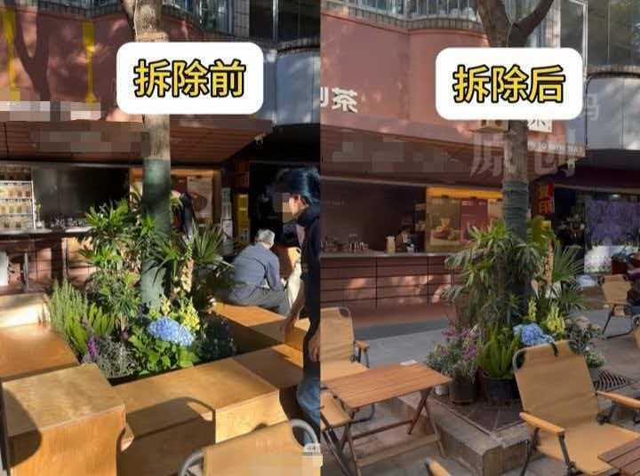 当地有关部门工作人员告诉极目新闻记者,经初步了解,该商户在店外的公共区域设置了固定座椅(花坛椅),可能存在占道经营,而且座椅的棱角比较尖,对路人存在一定安全隐患,便要求商户拆除。关于“网传以丑为由拆除”“花坛椅是否带经营属性”的问题,上述工作人员表示,相关具体情况还在核查中。